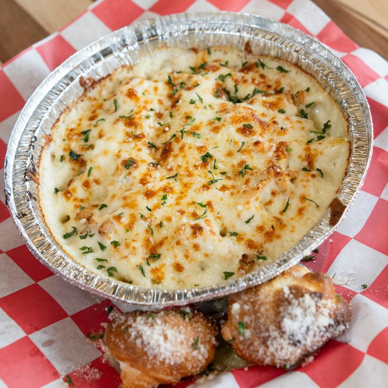 No dough! Choice of marinara or alfredo sauce & up to 3 toppings. Baked with cheese