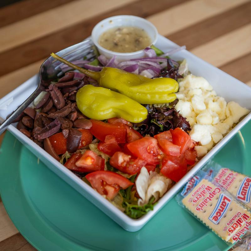 Feta cheese, mixed greens, tomatoes, red onions, kalamata olives & pepperoncinis • Small $6.99 | Large $10.99